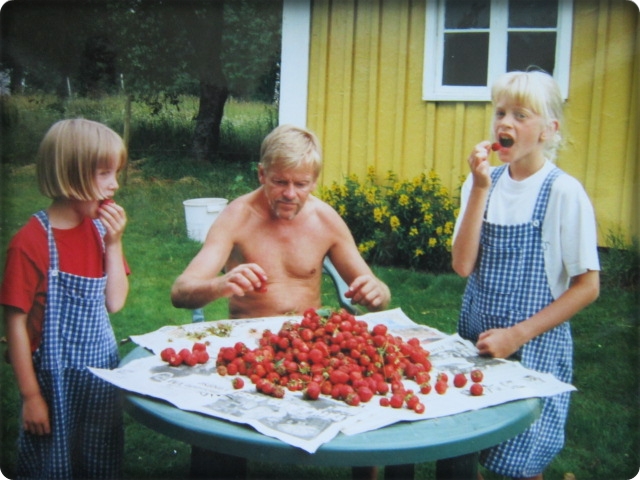 Jordgubbar har vi haft mycke av, till och från under åren som gått. Ett antal år var det stillje, men så fick vi mer tid (Rolf) och han vill gärna ha några rader, alltid gott att få njuta av jordgubbar. Det bästa sättet är när man bara få ta i landet, borsta eller blåsa av jorden och stoppa i munnen, eller hur Tina.
